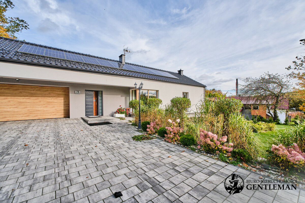 Na dachu zainstalowano fotowoltaikę - 10KW, a całość ogrzewana jest wydajną pompą ciepła 10,5KW Kospel, wraz z ogrzewaniem podłogowym, co gwarantuje bardzo niskie koszty eksploatacji.