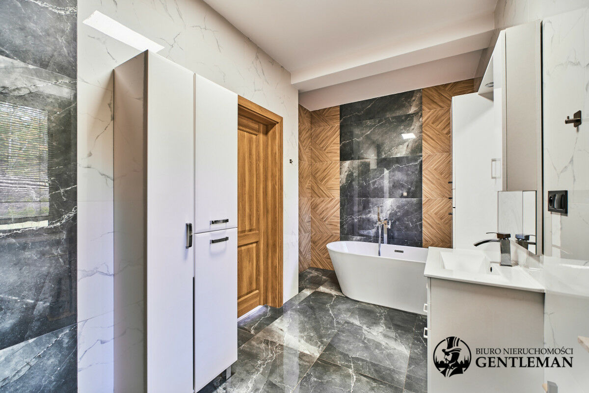 - 3 stylowe łazienki, każda z prysznicem i toaletą, w tym jedna z wanną, wykończone z dbałością o detale i nowoczesne trendy.